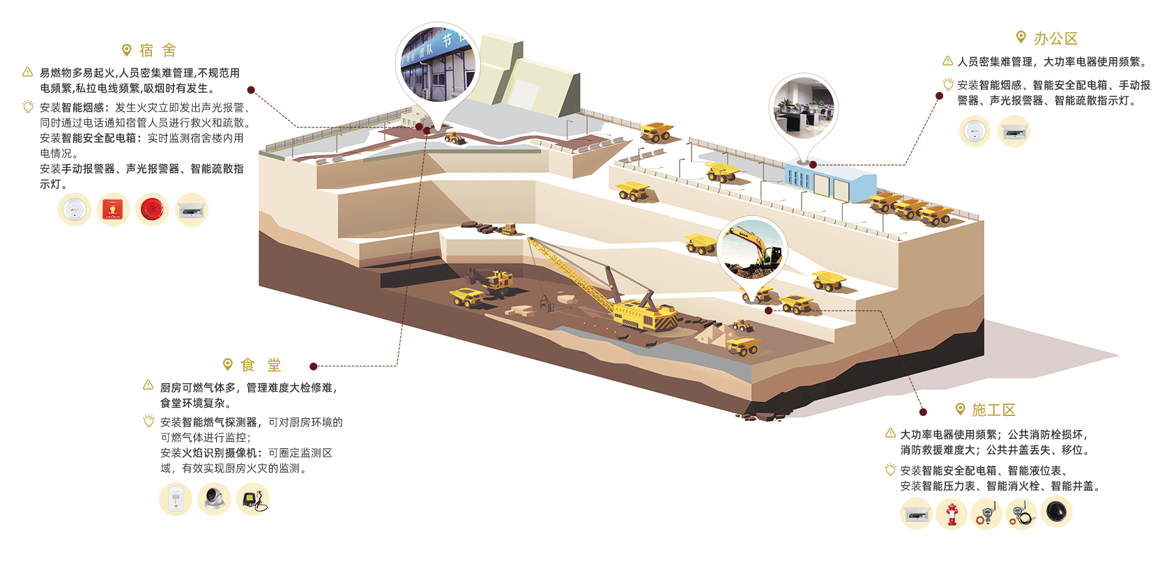 安装智能烟感、智能安全配电箱、智能应急疏散指示灯、智能声光报警器