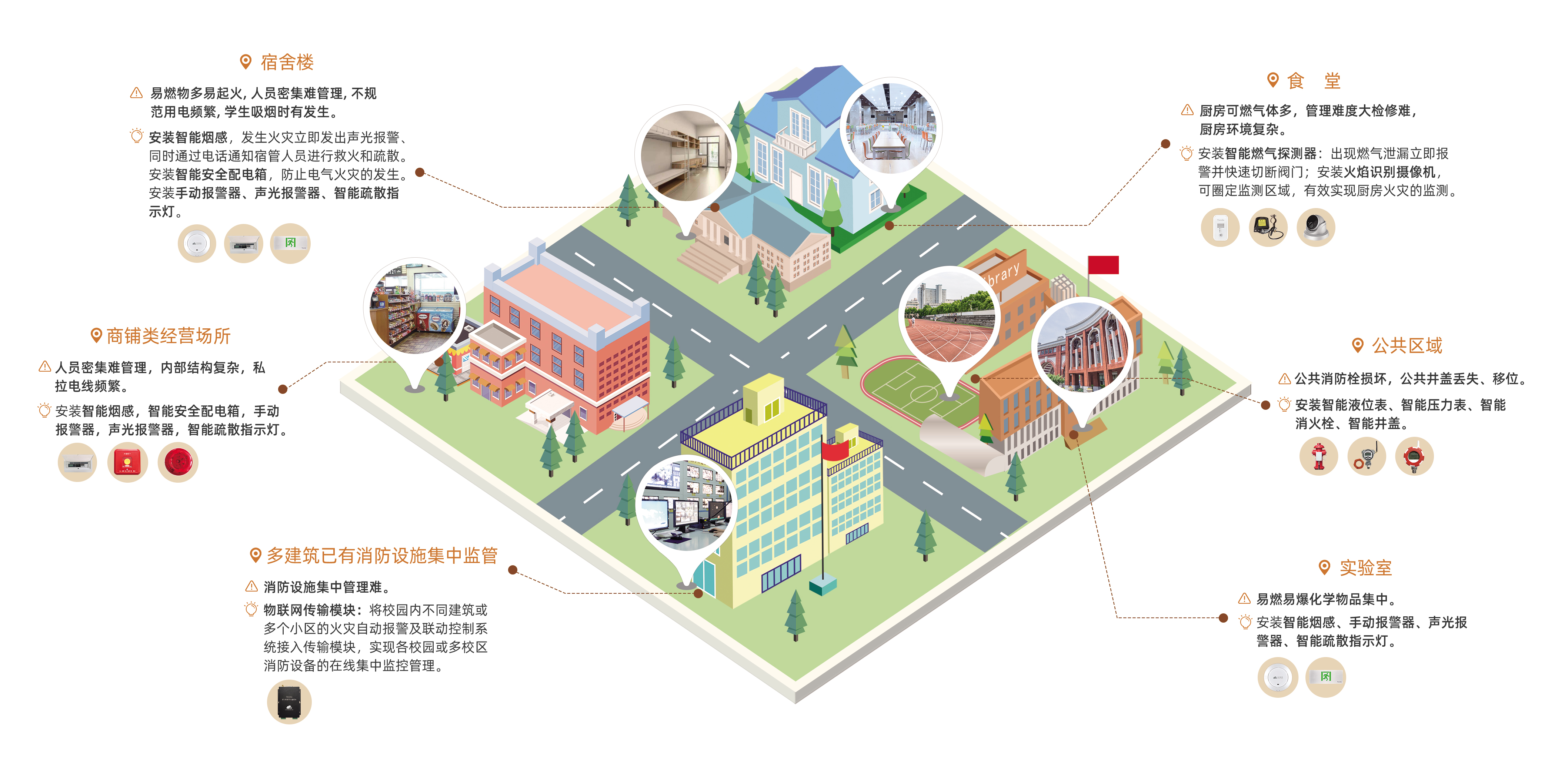 提供定制开发信息化消防安全管理工具服务,帮助主管部门实时全局掌握管辖校园单位的火灾隐患和消防安全管理现状。